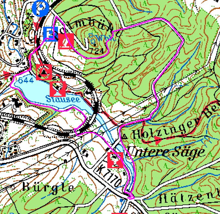 zum Palmbühl- am Palmbühl vorbei- über den Stauseedamm- zurück zum Ausgangspunkt